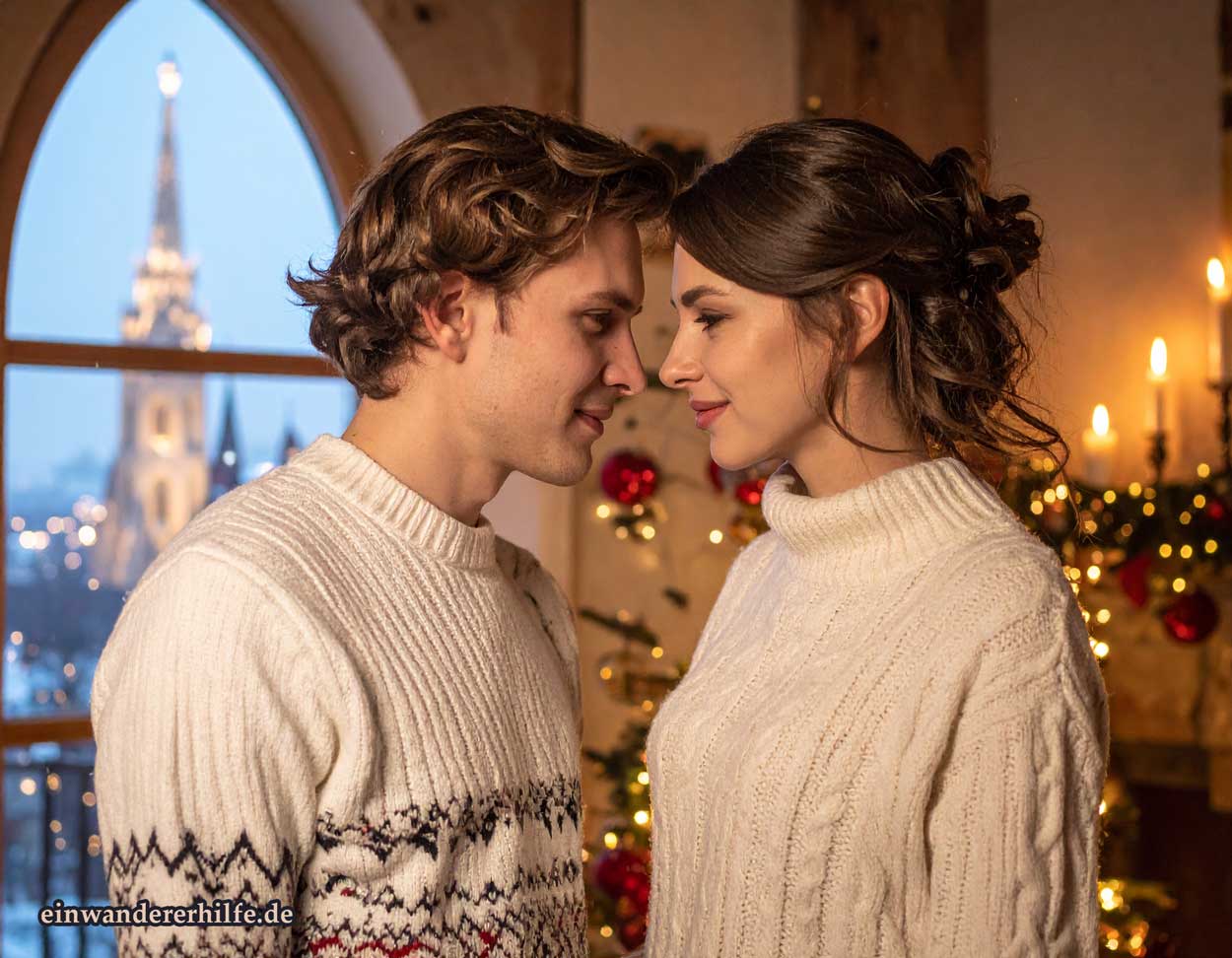Ein junges Paar genießt Weihnachten in Ungarn – umgeben von Kerzenlicht, festlicher Stimmung und dem Zauber ungarischer Weihnachtstraditionen.